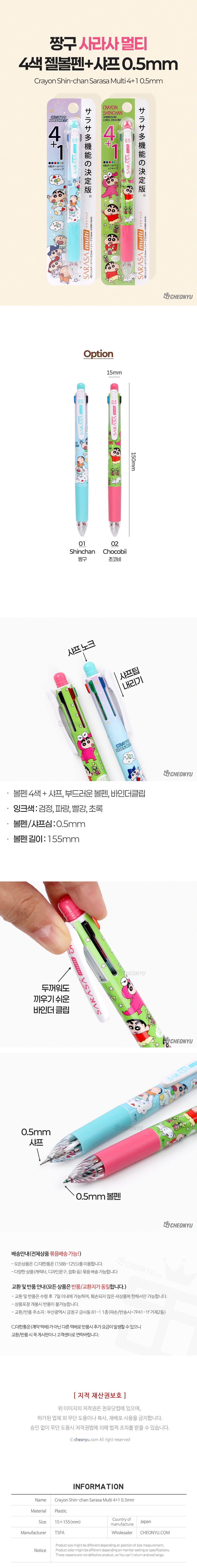 짱구 사라사 멀티 4색 젤볼펜+샤프 0.5mmOPTION