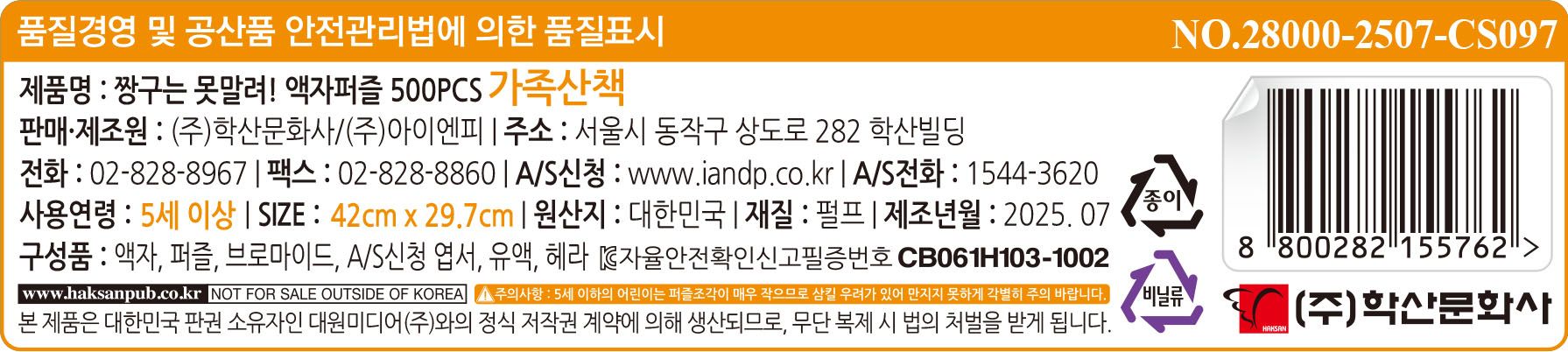 액자 + 퍼즐 + 브로마이드 + A/S신청 엽서 + 유액 + 헤라