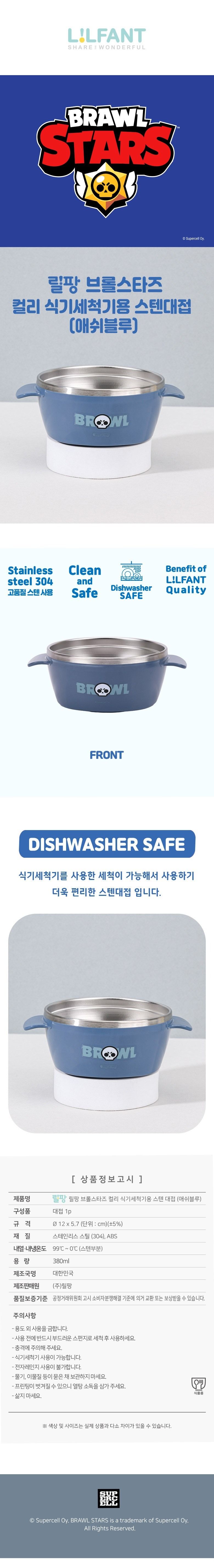 브롤스타즈 컬러 식기세척기용 스텐 대접_애쉬블루