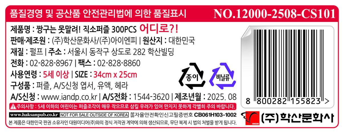 퍼즐 + A/S신청 엽서 + 유액 + 헤라