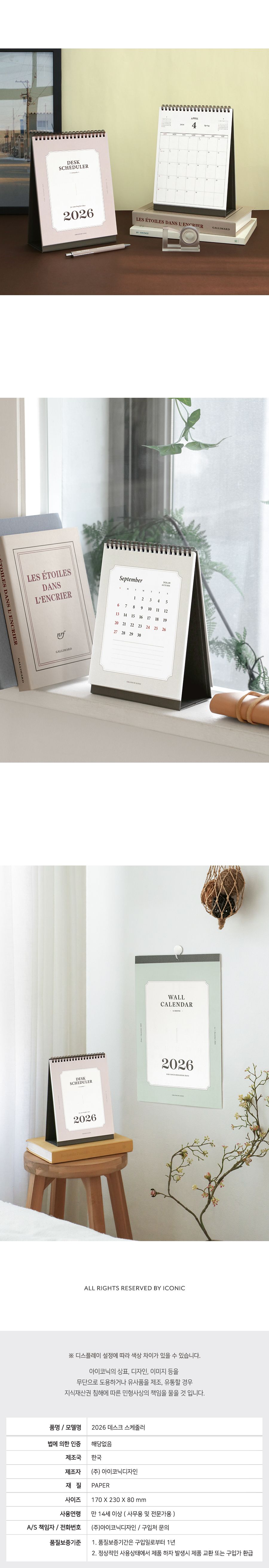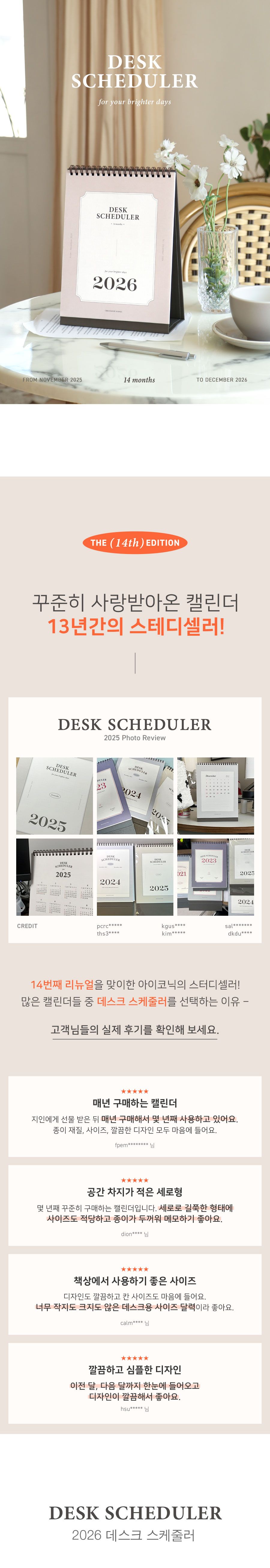 2026 데스크 스케줄러 탁상 달력 캘린더