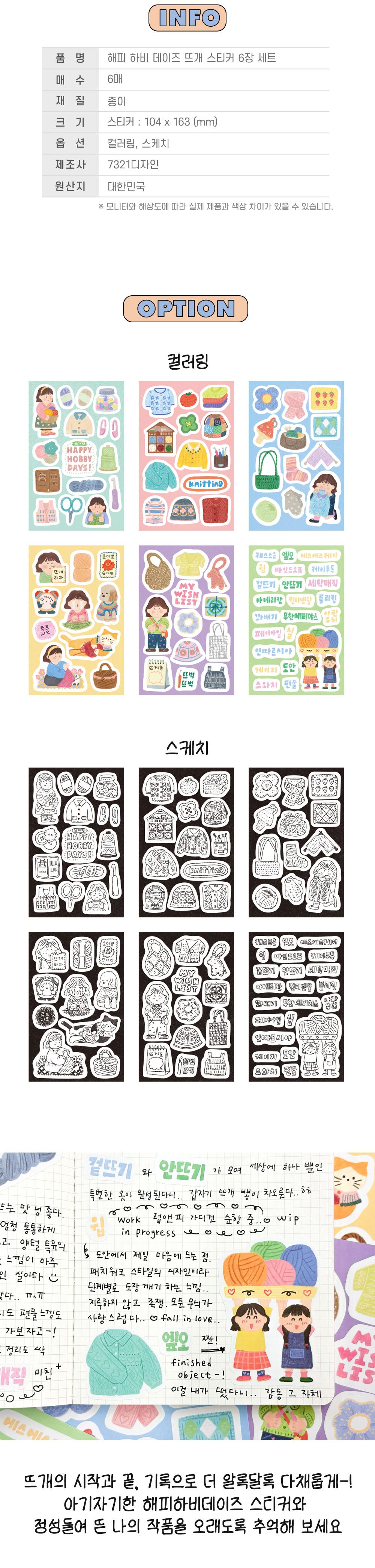해피 하비 데이즈 뜨개 스티커 6장 세트