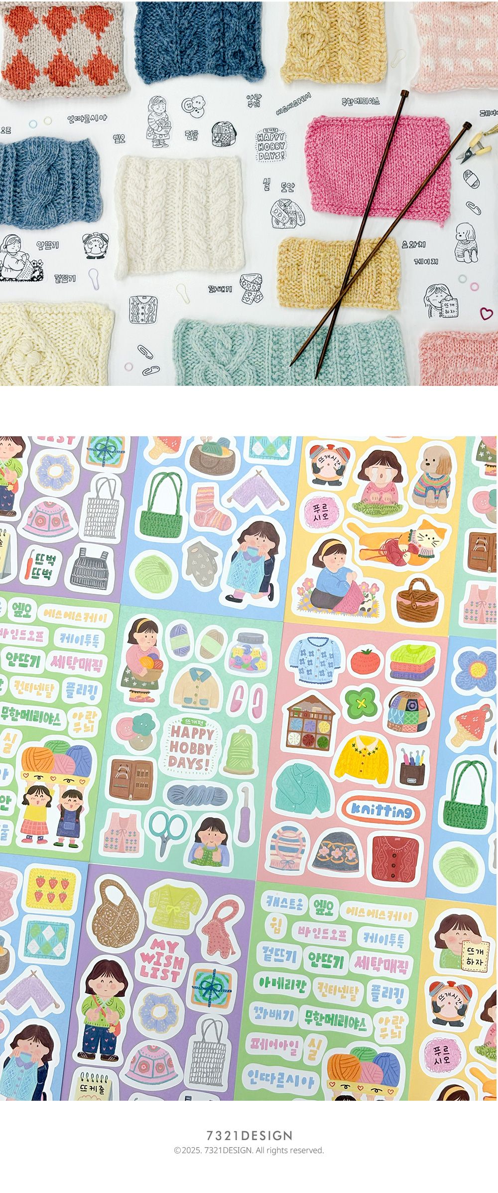 해피 하비 데이즈 뜨개 스티커 6장 세트OPTION