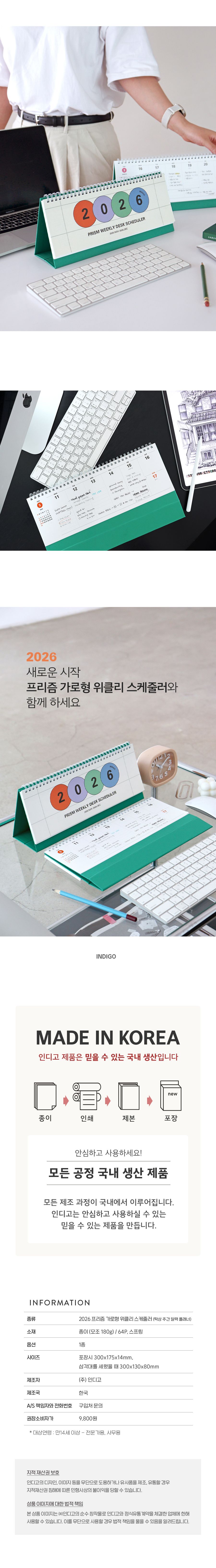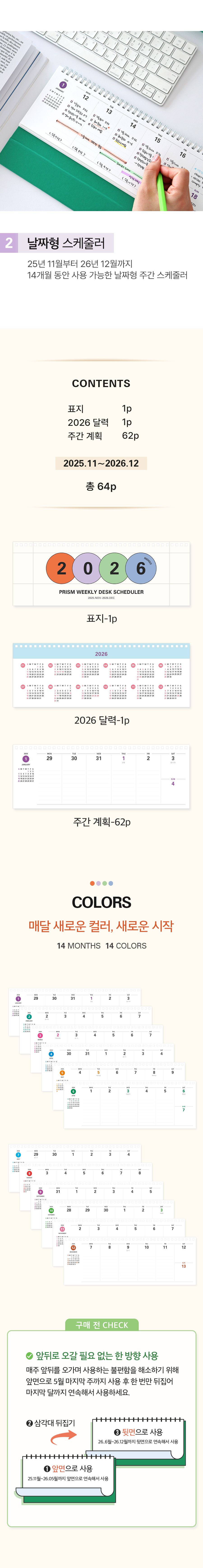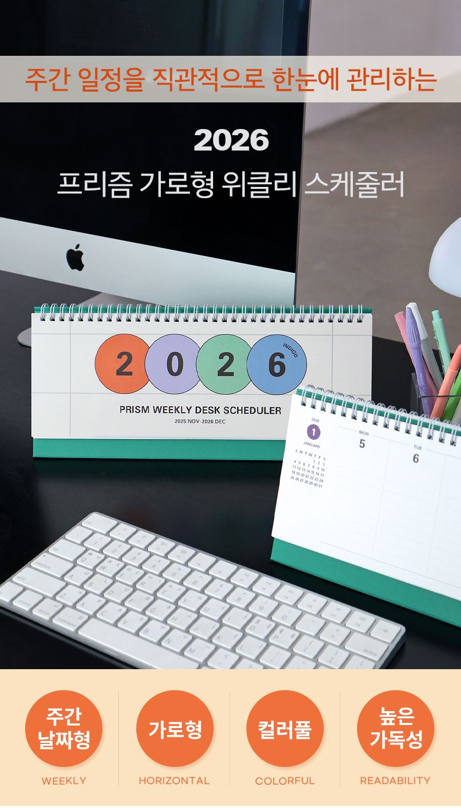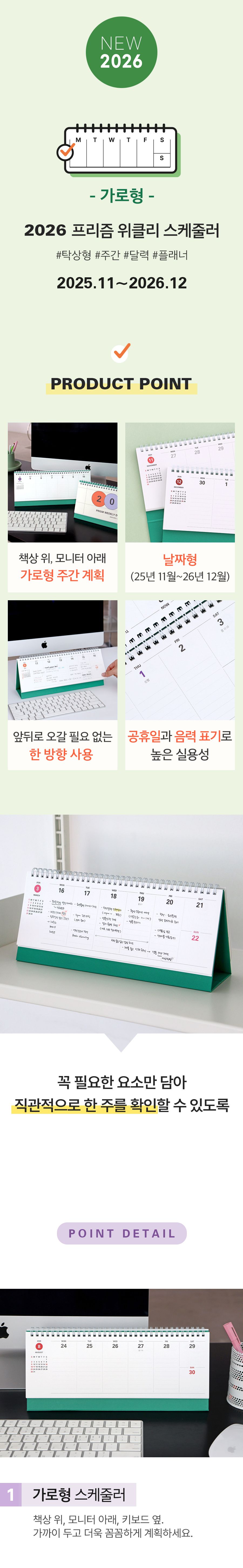 2026 프리즘 가로형 위클리 스케줄러 (탁상 주간 달력 플래너)