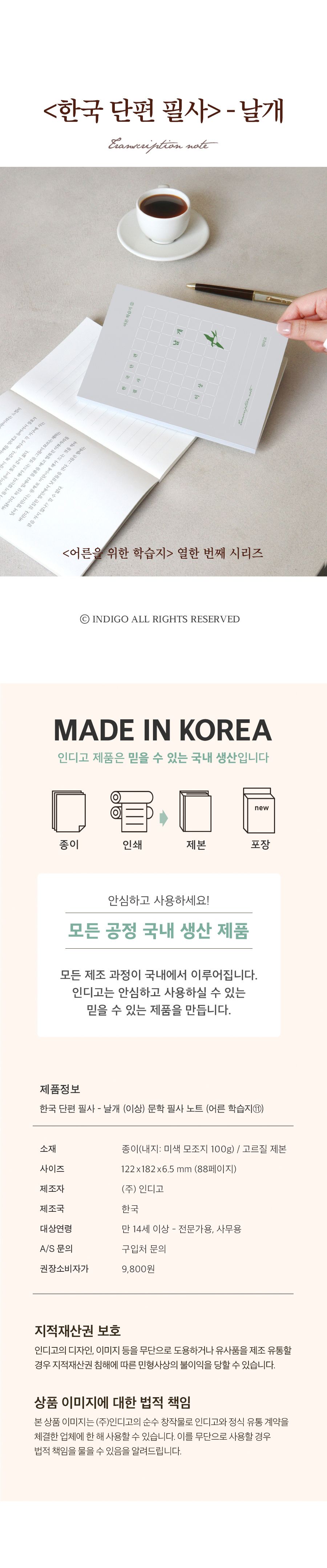 한국 단편 필사 - 날개 (이상) 문학 필사 노트 (어른 학습지 ⑪)