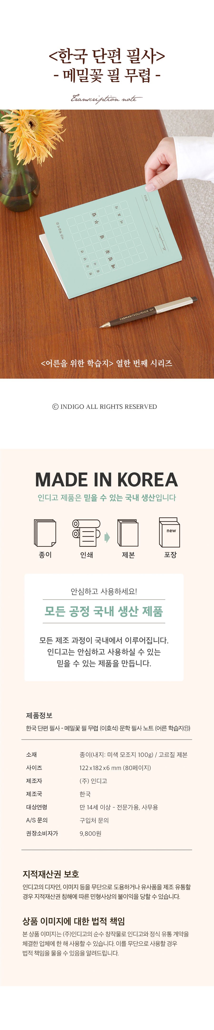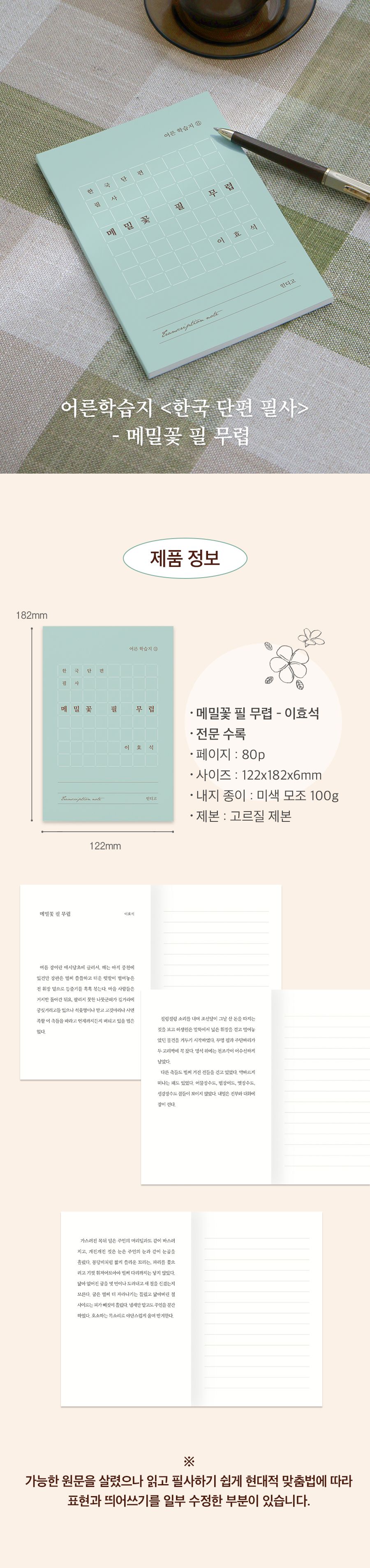 한국 단편 필사 - 메밀꽃 필 무렵 (이효석) 문학 필사 노트 (어른 학습지 ⑪)