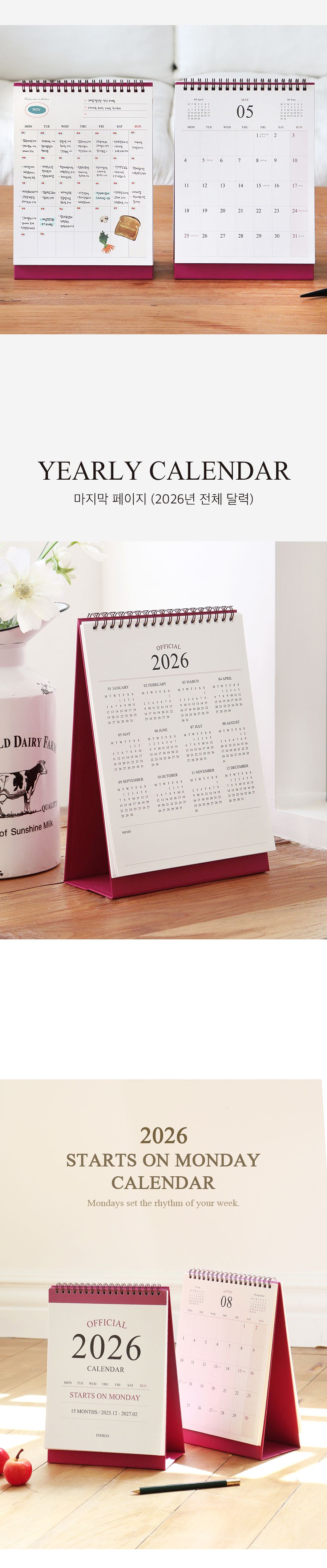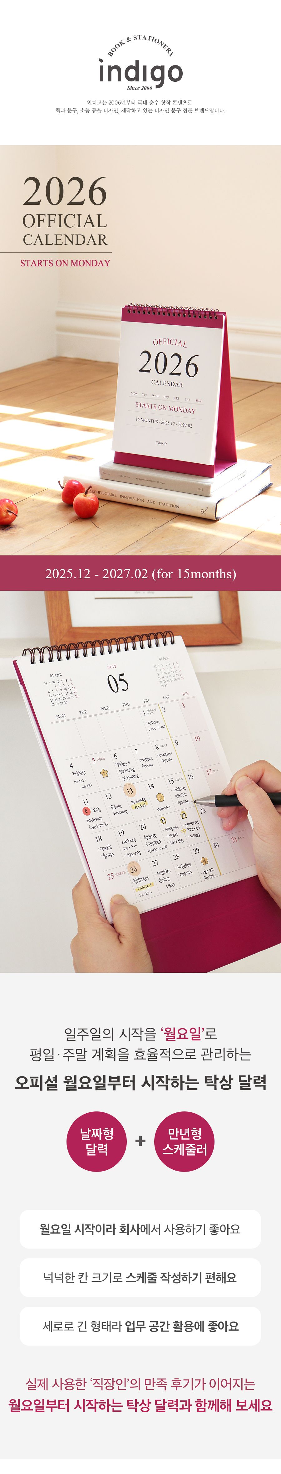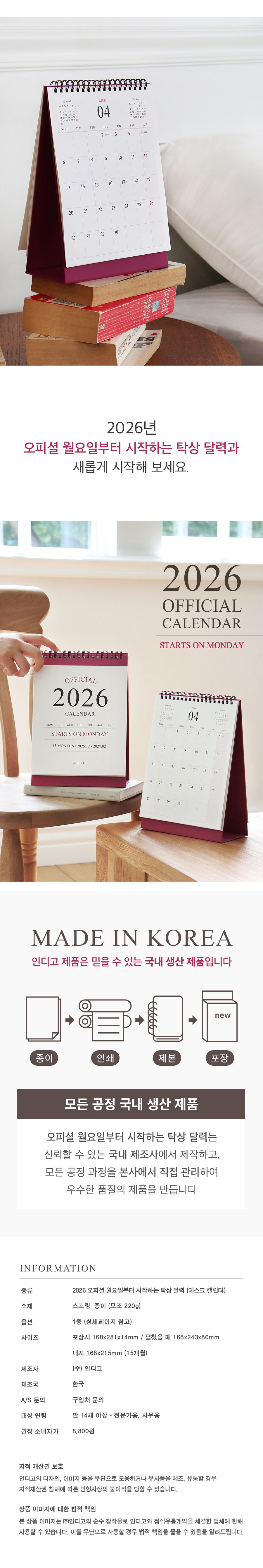 2026 오피셜 월요일부터 시작하는 탁상 달력 (데스크 캘린더)