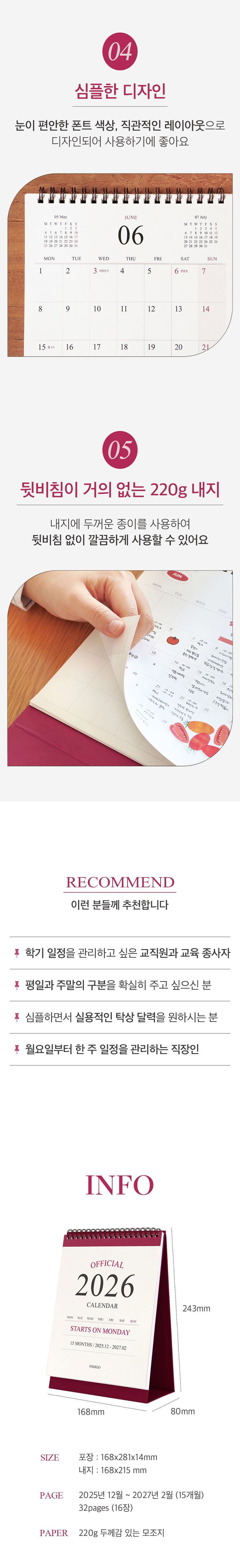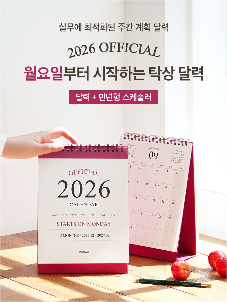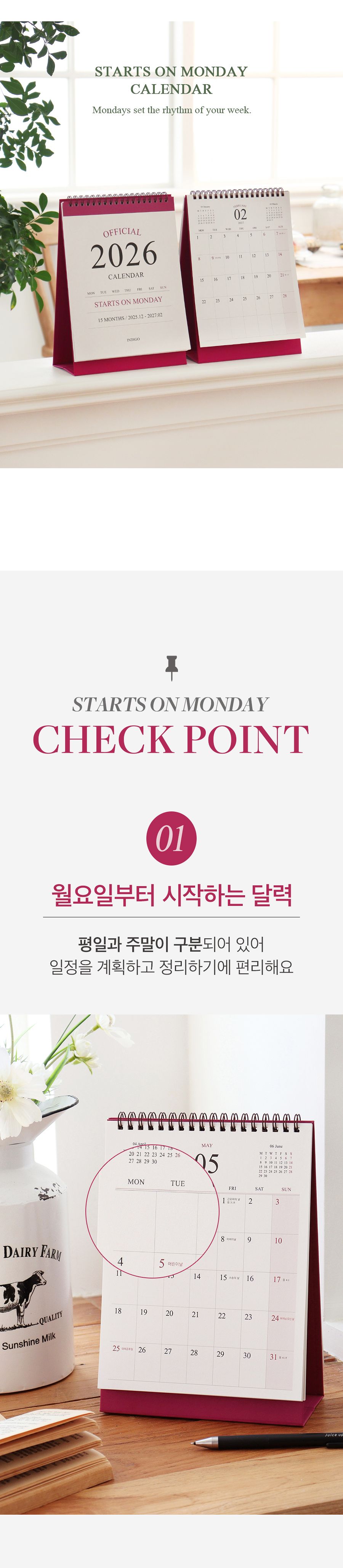 2026 오피셜 월요일부터 시작하는 탁상 달력 (데스크 캘린더)