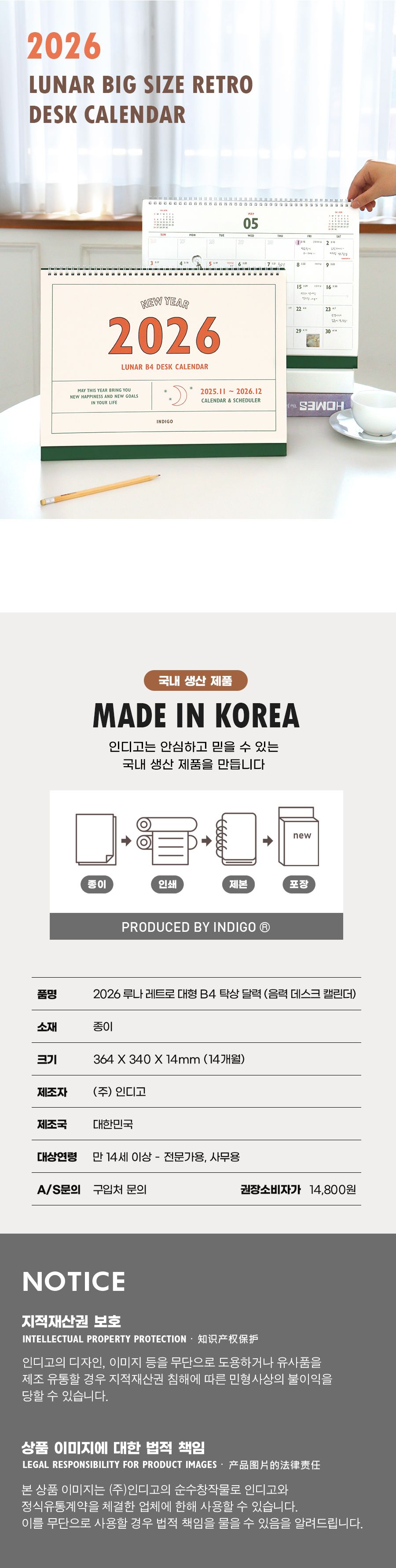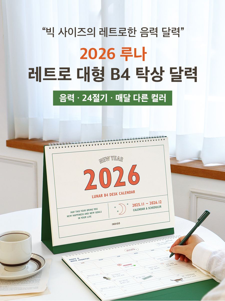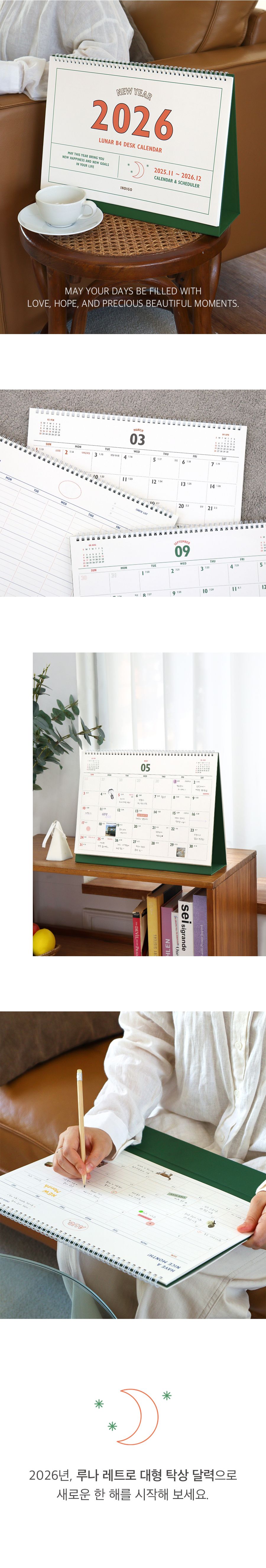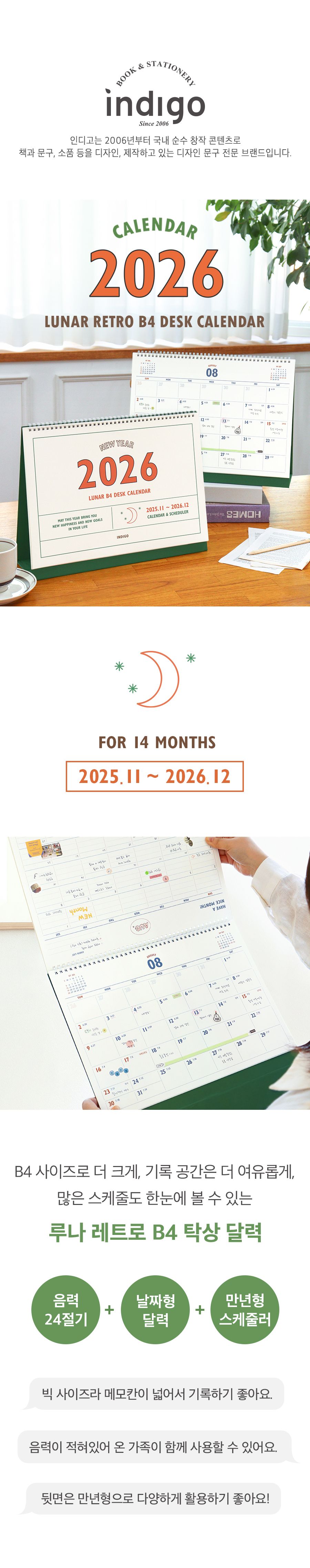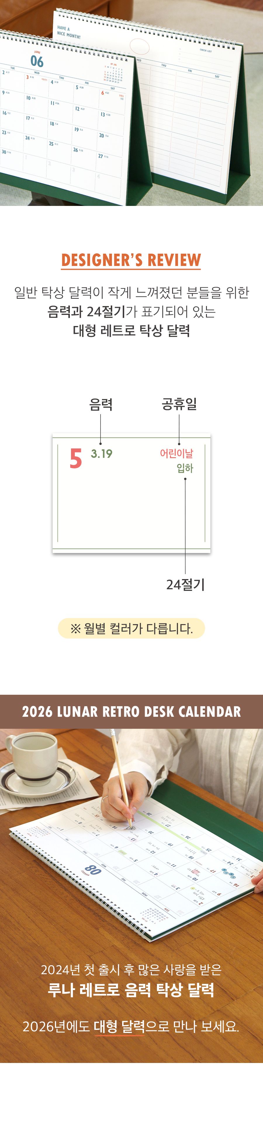 2026 루나 레트로 대형 B4 탁상 달력 (음력 데스크 캘린더)