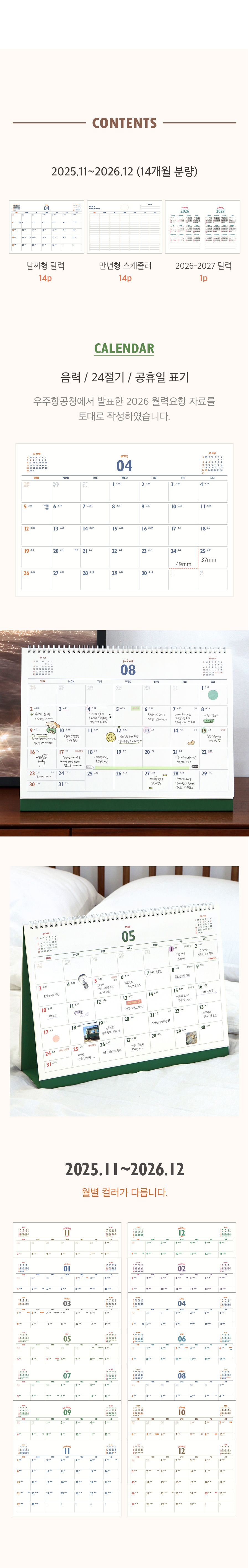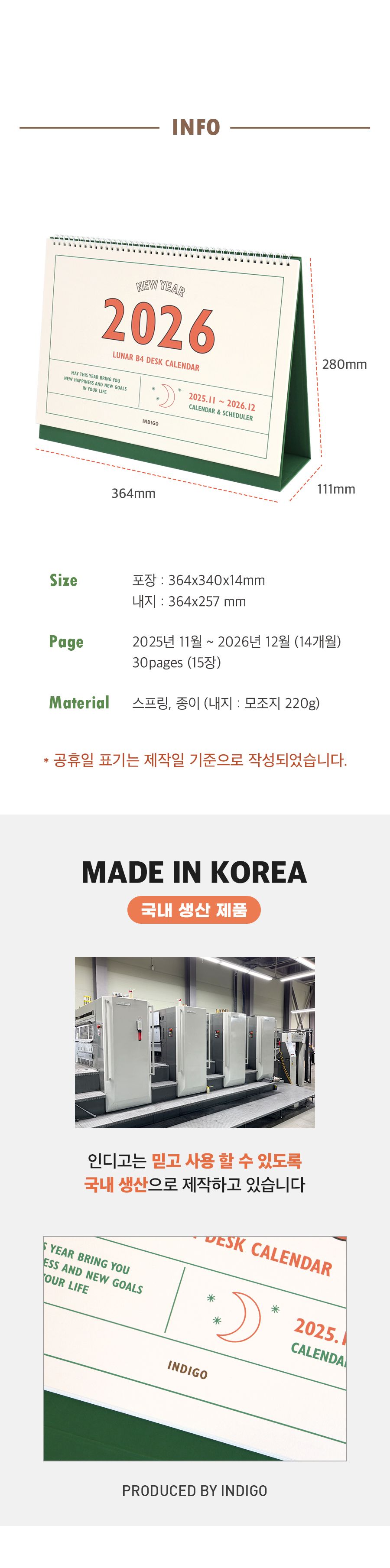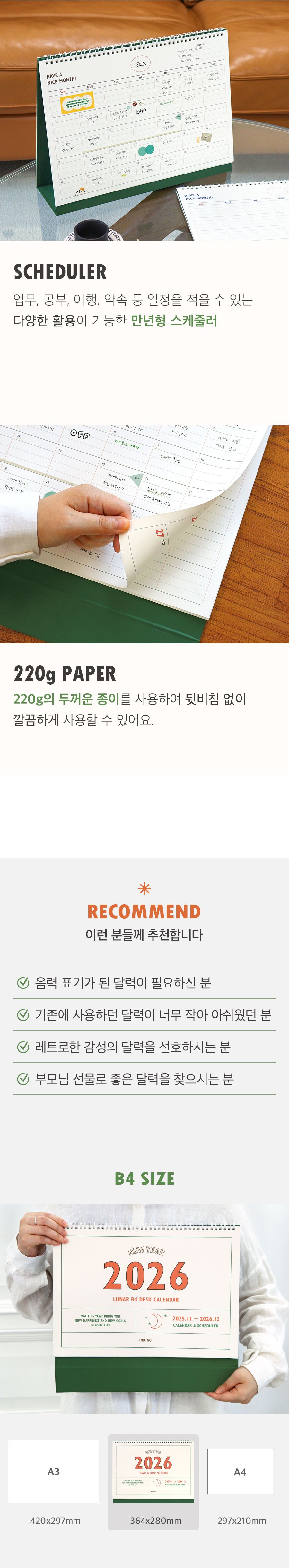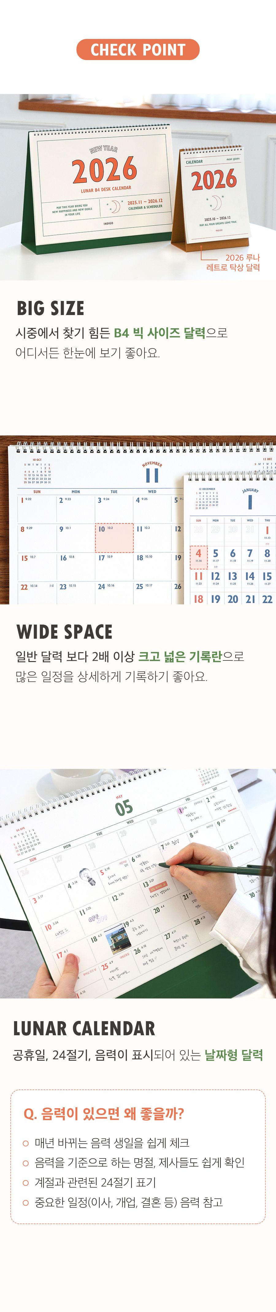 2026 루나 레트로 대형 B4 탁상 달력 (음력 데스크 캘린더)
