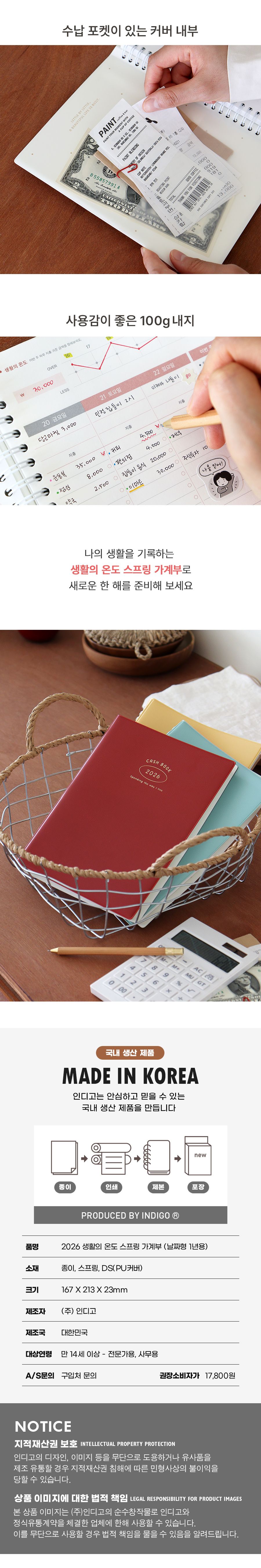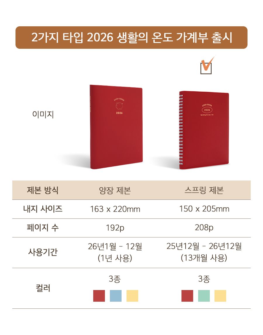 2026 생활의 온도 스프링 가계부 (날짜형 1년용)OPTION