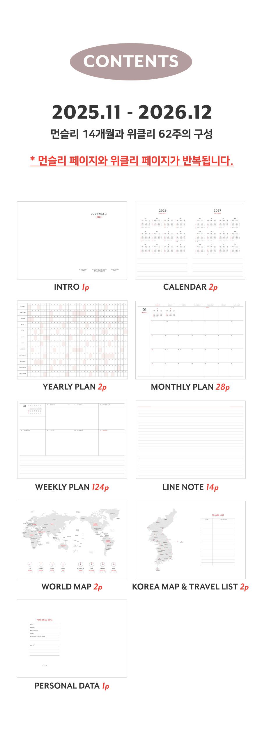 2026 저널 J 다이어리 위클리 A5 플래너 스케줄러OPTION