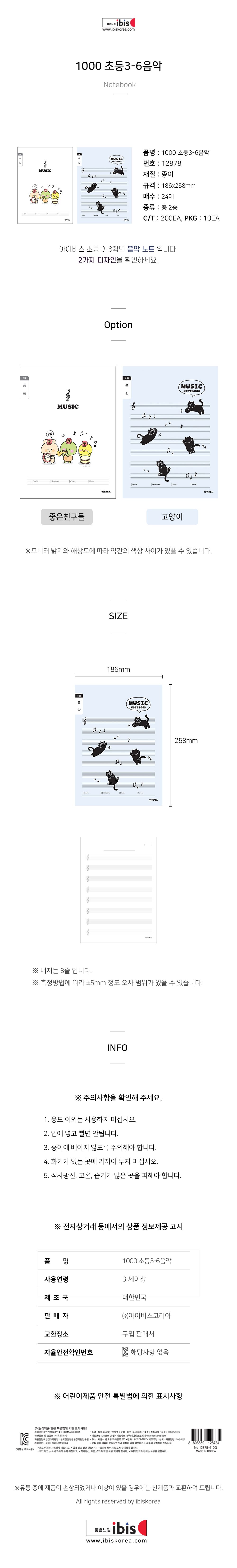 1000 초등3-6 음악 노트 랜덤발송 (10개 1세트)