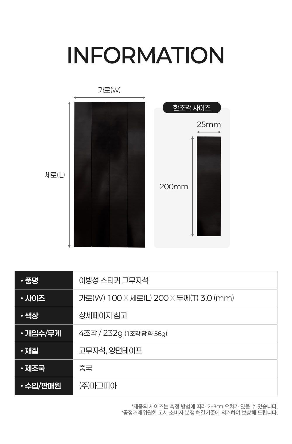 접착식 스티커 고무자석 4개입 (100mm x 200mm)