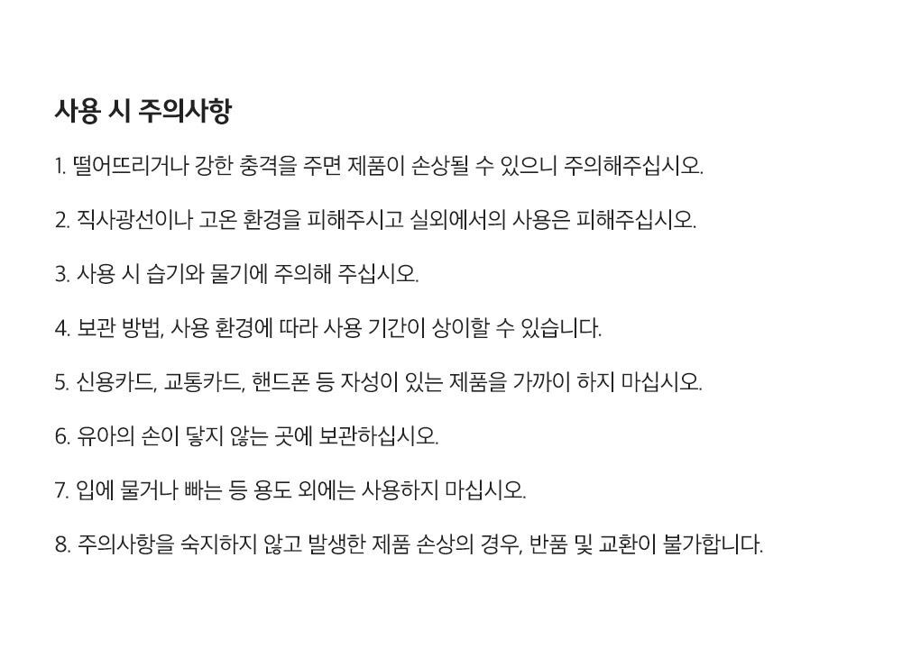 수령일로부터 7일이내 교환 및 환불 가능 (제품에 손상이 없는 경우 해당)