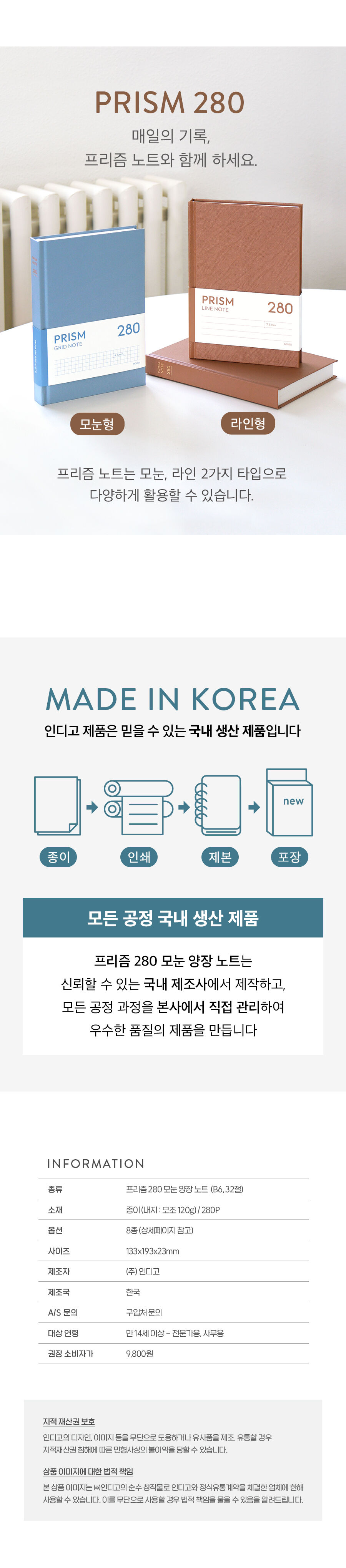 프리즘 280 모눈 양장 노트 (B6 32절)OPTION