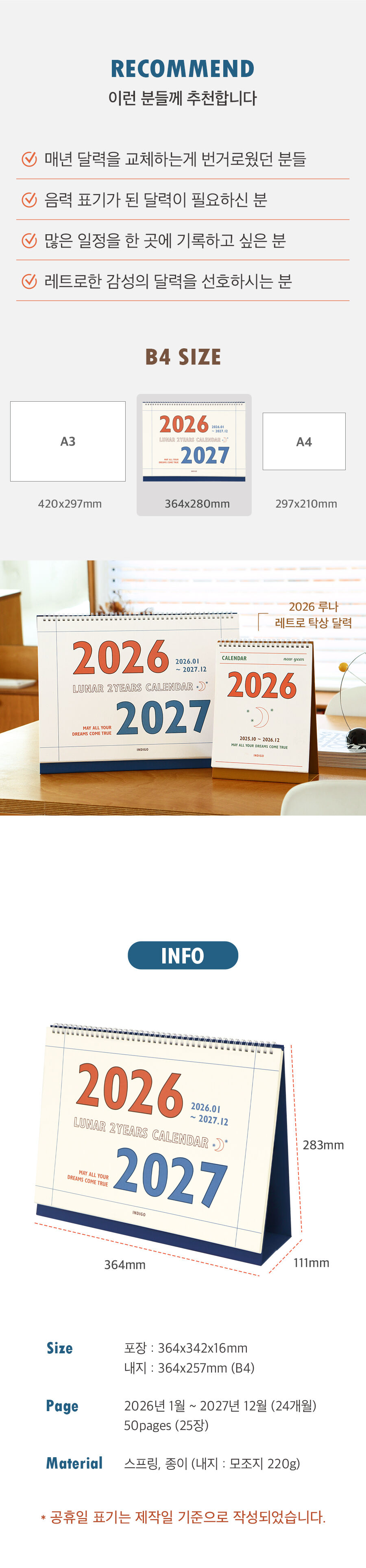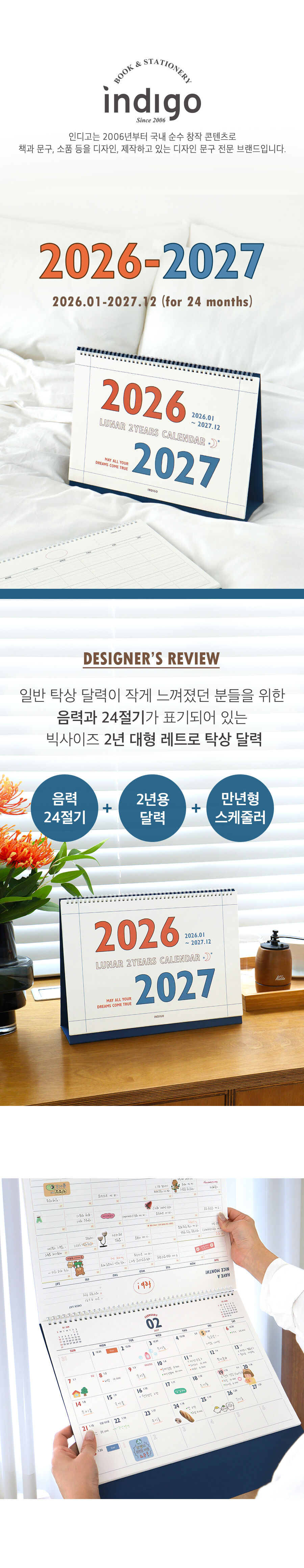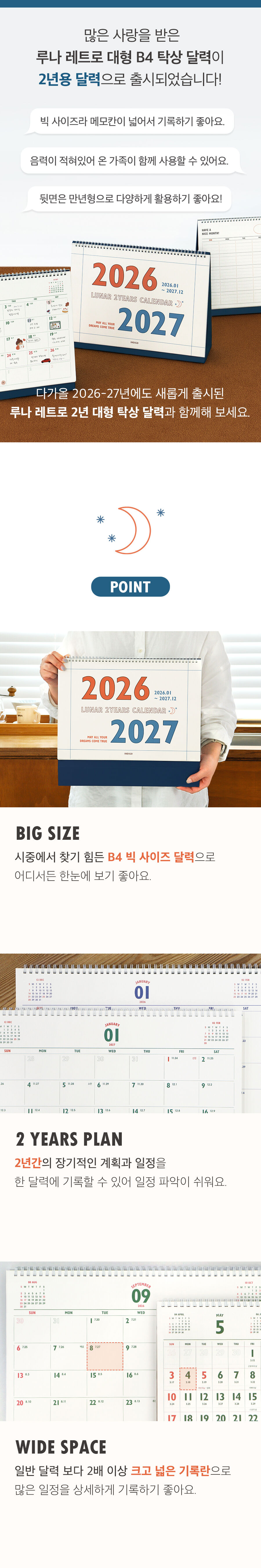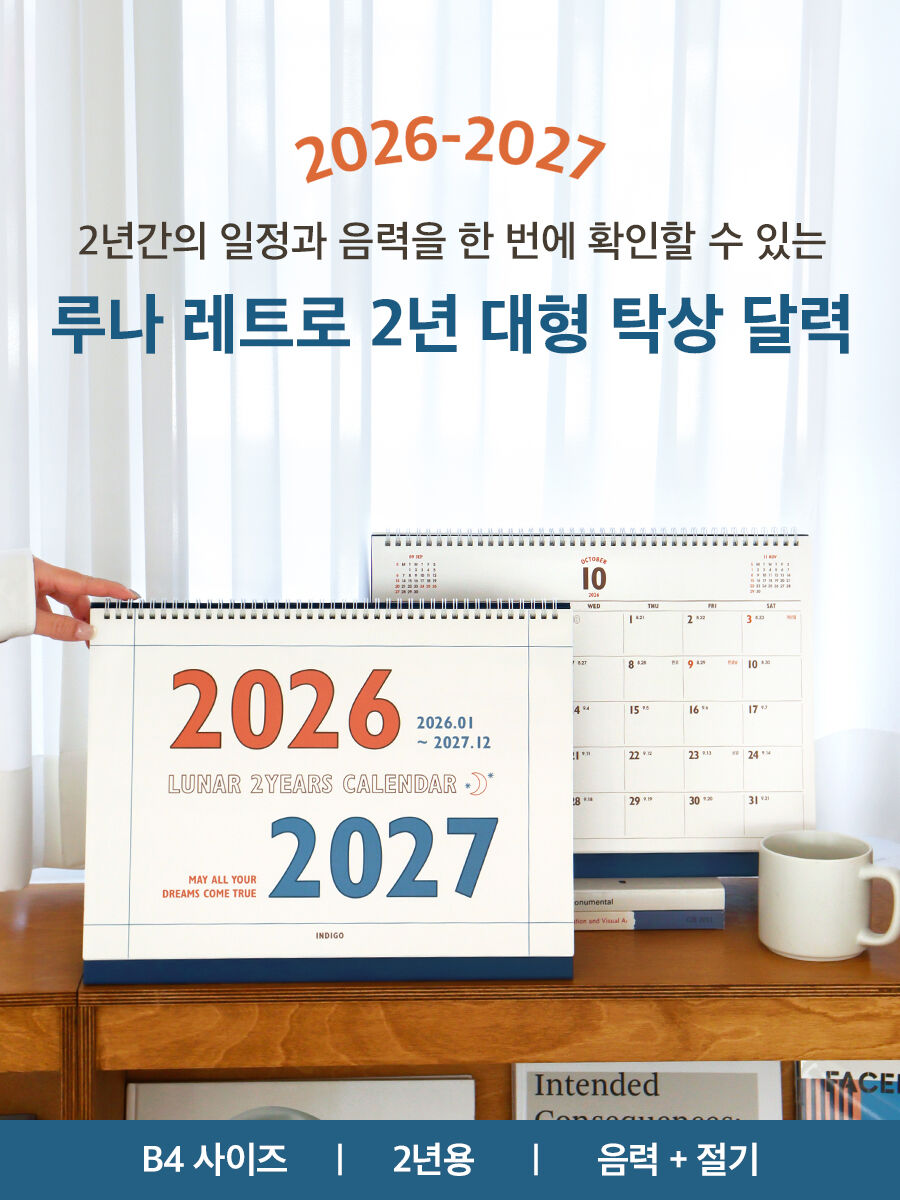 (26-27) 루나 레트로 2년 대형 B4 탁상 달력 (26년 1월-27년 12월 음력 절기)