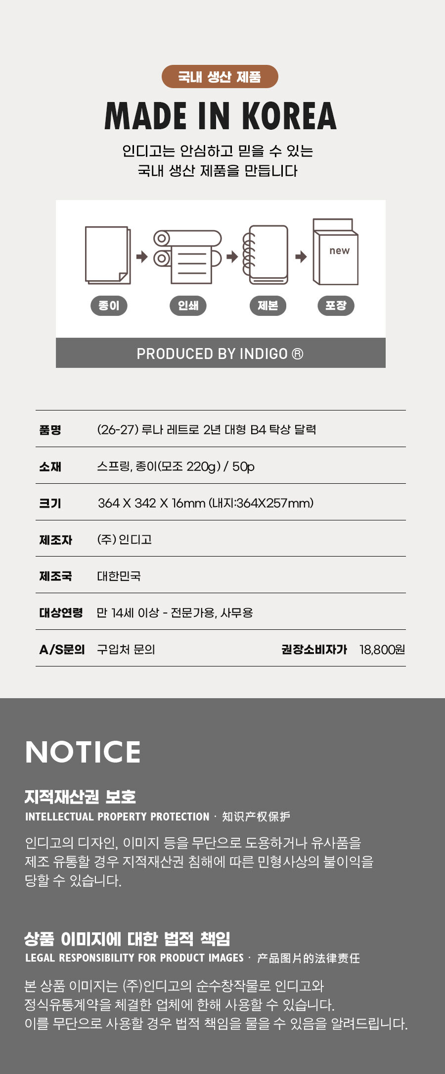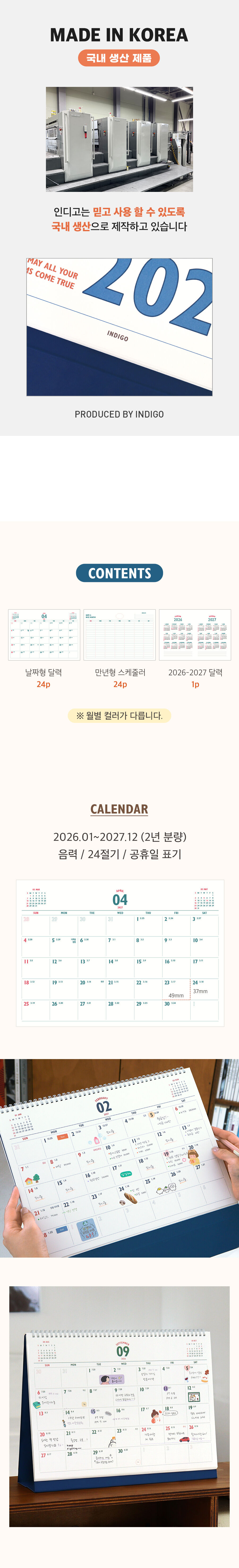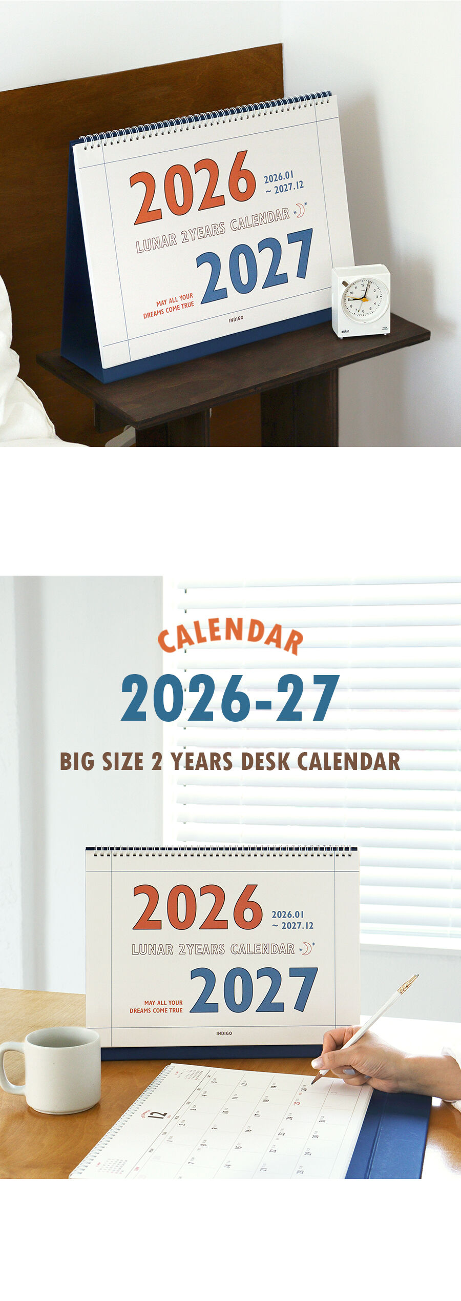 (26-27) 루나 레트로 2년 대형 B4 탁상 달력 (26년 1월-27년 12월 음력 절기)