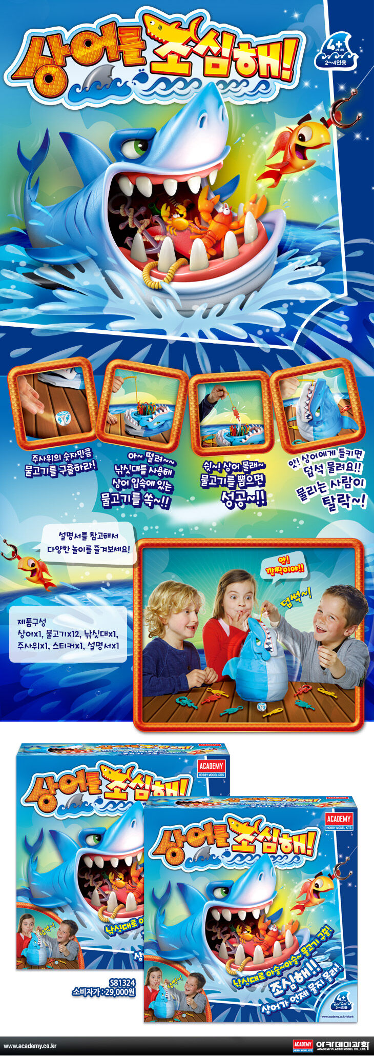 상어 1 + 물고기 12 + 낚싯대 1 + 주사위 1 + 스티커 1 + 설명서 1