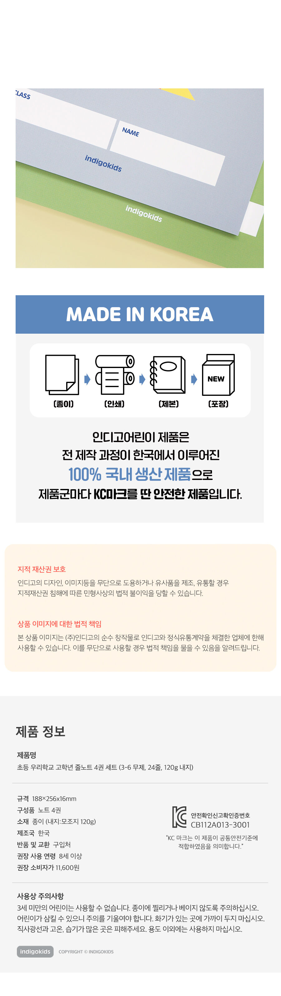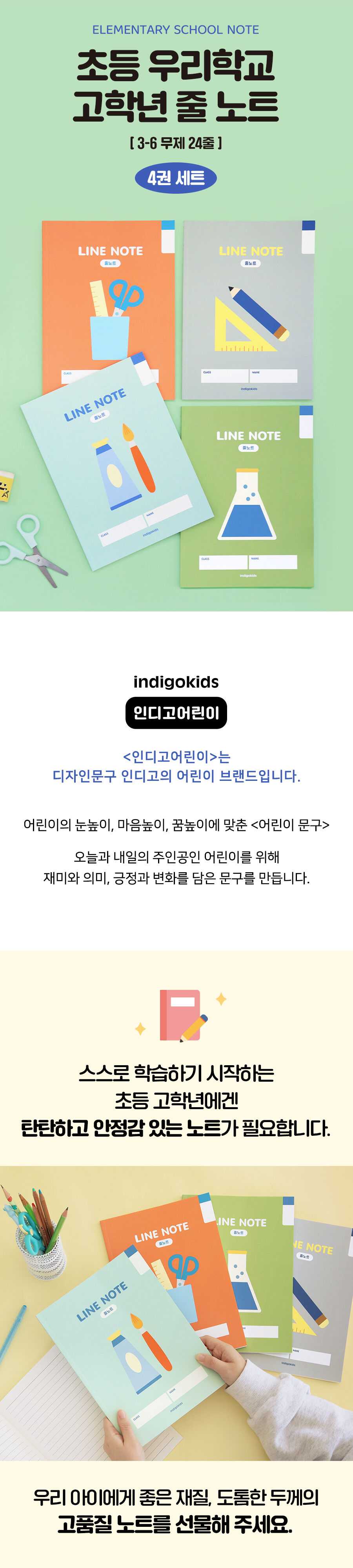초등 우리학교 고학년 줄노트 4권 세트 (3-6 무제 24줄 120g 내지)