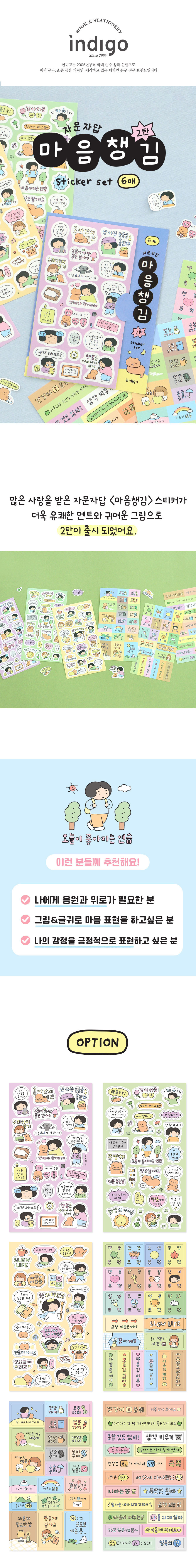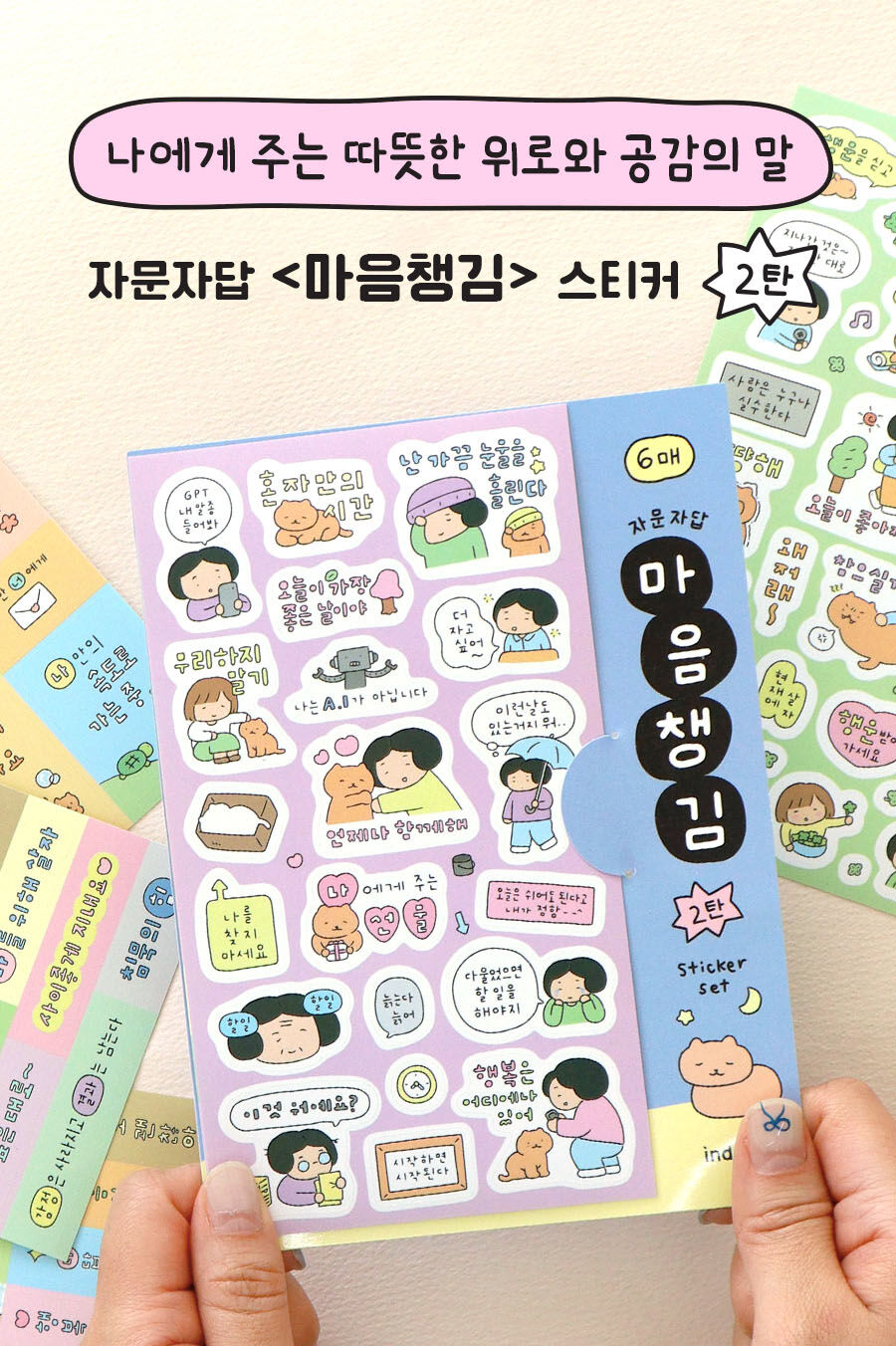 자문자답 마음챙김 스티커세트 2탄 (6매 다꾸 포인트 다이어리 꾸미기)