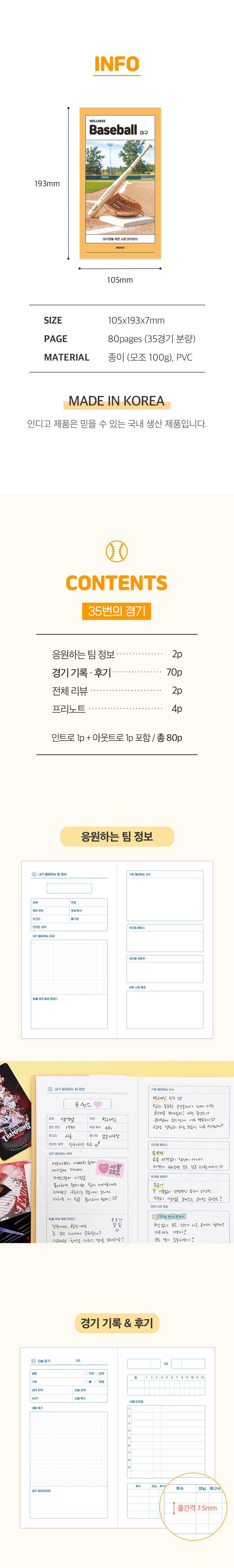 마이 웰니스 로그 : 야구 (노트 핸디 야구팬 경기)NEW