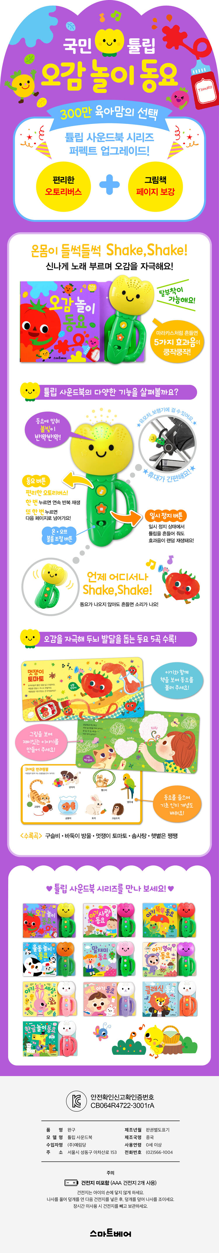| 품명 및 모델명 | 튤립 사운드북 오감놀이 동요 | ||