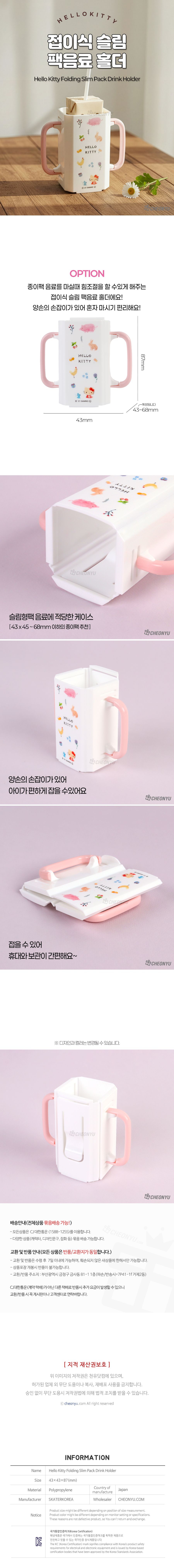 | 품명 및 모델명 | 헬로키티 접이식 슬림 팩음료 홀더 | ||