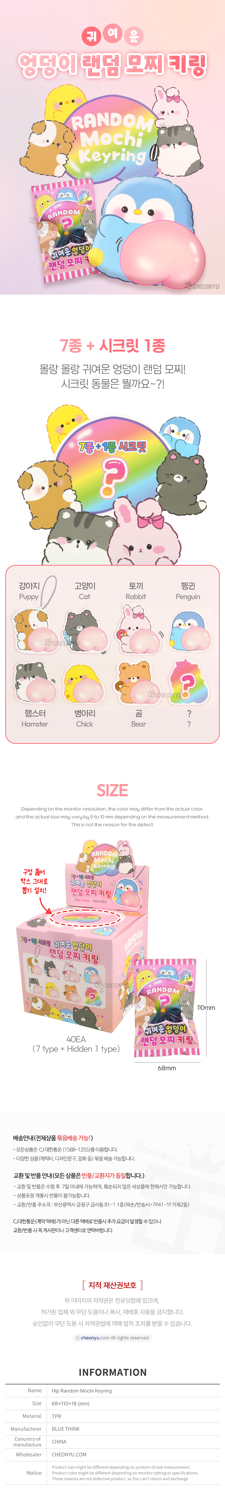 | 품명 및 모델명 | 엉덩이 랜덤 모찌 키링 (40개 1세트) | ||