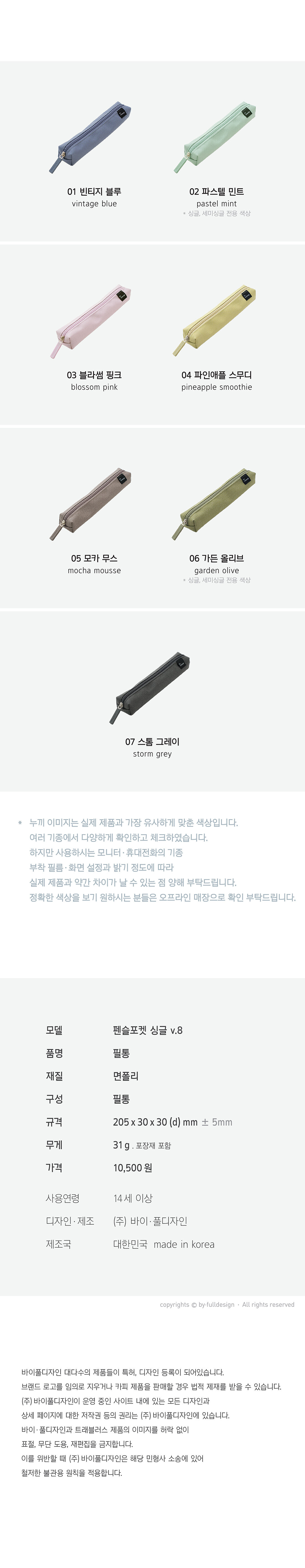 | 품명 및 모델명 | 펜슬포켓 싱글 v.8 | ||