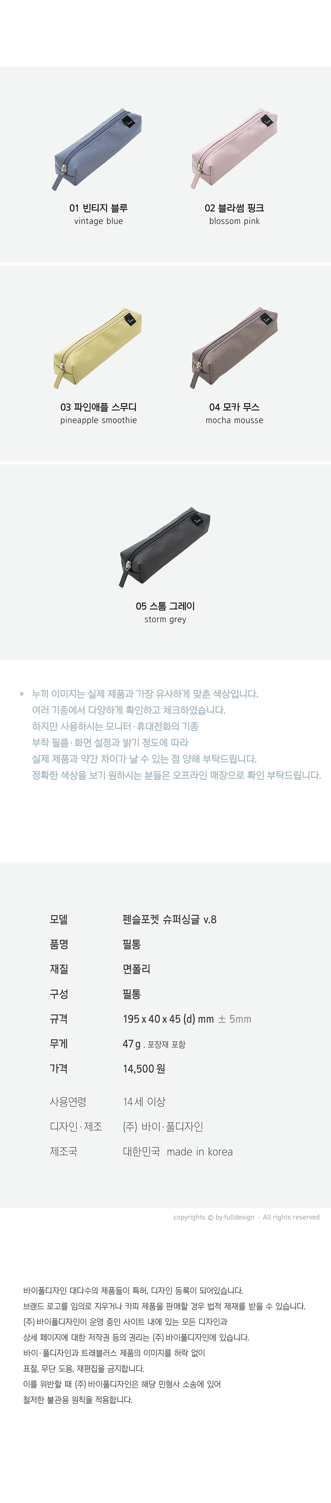 | 품명 및 모델명 | 펜슬포켓 슈퍼싱글 v.8 | ||