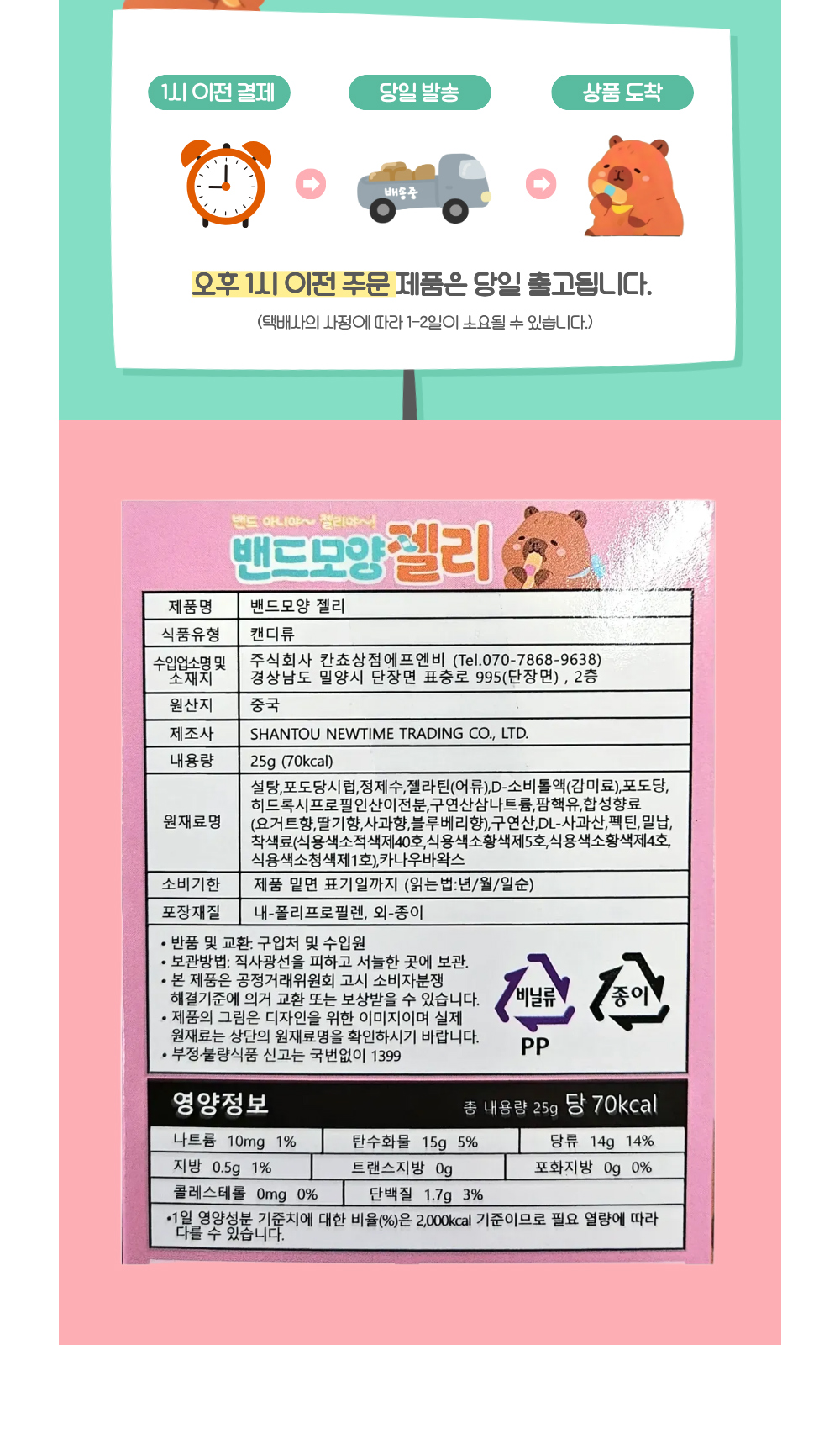 | 품명 및 모델명 | 밴드모양 젤리 25g 5개입 (랜덤발송) | ||