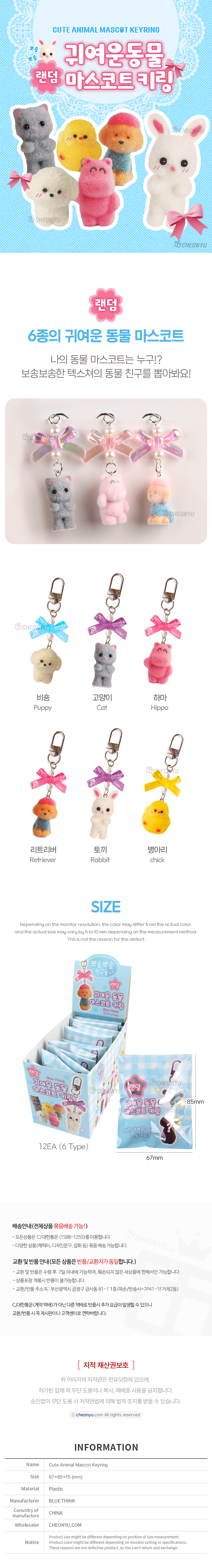 | 품명 및 모델명 | 귀여운 동물 마스코트 랜덤키링 | ||