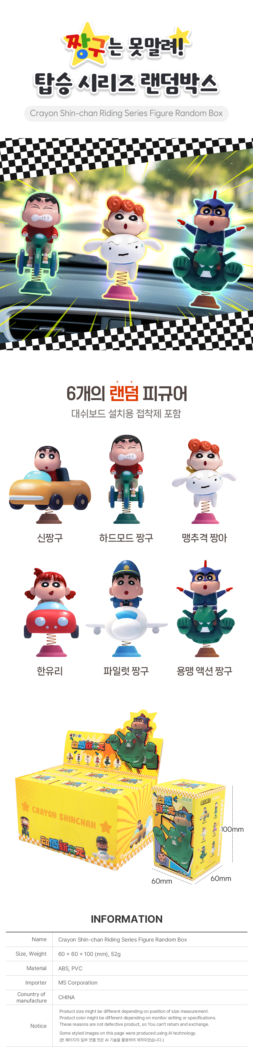 | 품명 및 모델명 | 짱구 탑승시리즈 피규어 랜덤박스 | ||