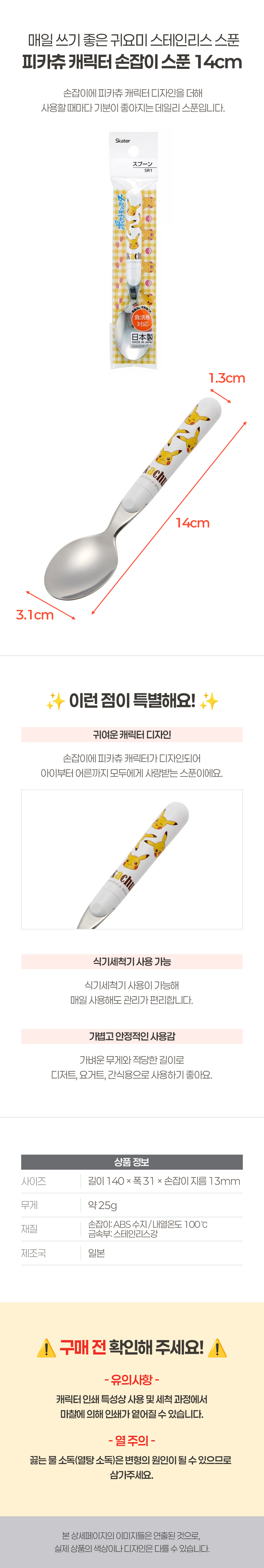 | 품명 및 모델명 | 피카츄 스푼 14cm | ||