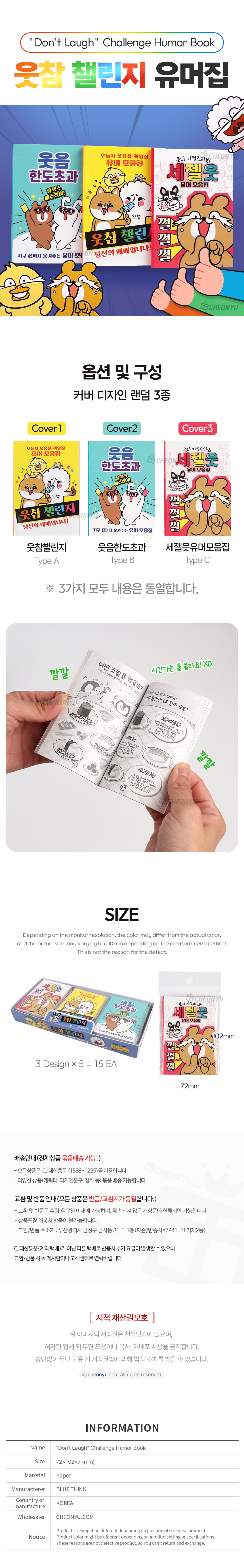 | 품명 및 모델명 | 웃참 챌린지 유머집 (랜덤발송) | ||
