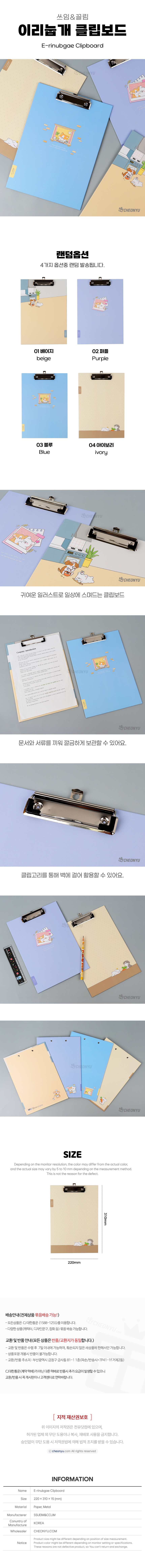 | 품명 및 모델명 | 이리눕개 클립보드 (랜덤발송) | ||