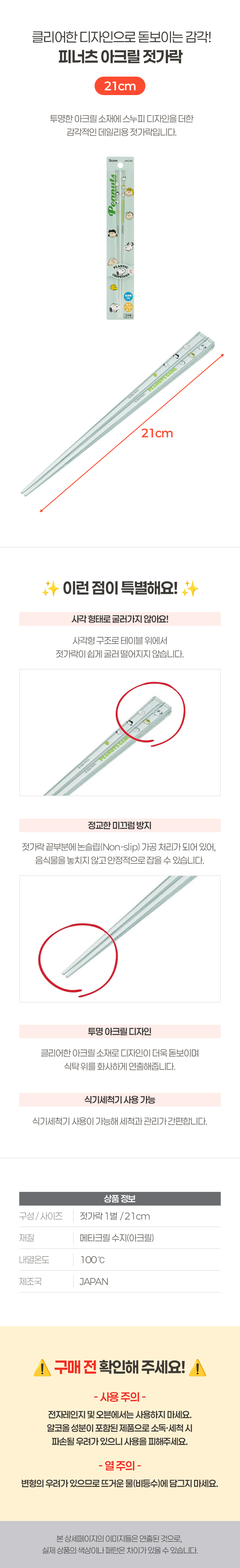 | 품명 및 모델명 | 피너츠 아크릴 젓가락 21cm | ||