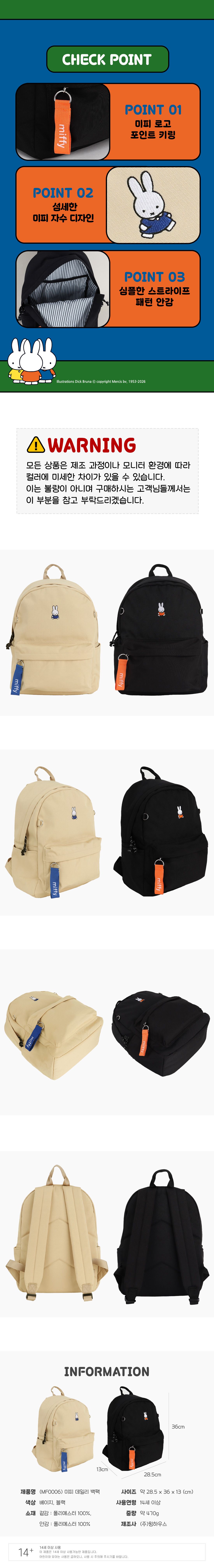| 품명 및 모델명 | 미피 데일리 백팩 | ||