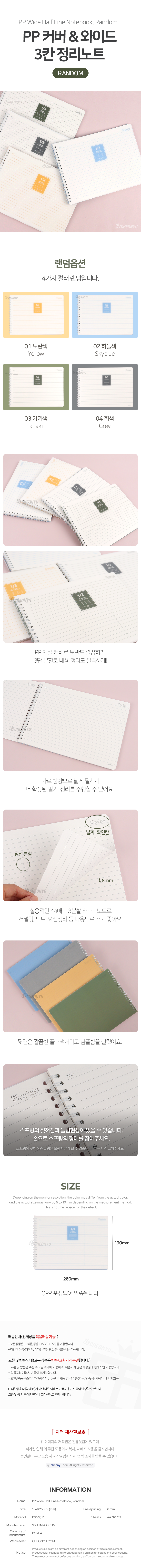 | 품명 및 모델명 | PP 넓게쓰는 3칸 정리 노트 (랜덤발송) | ||