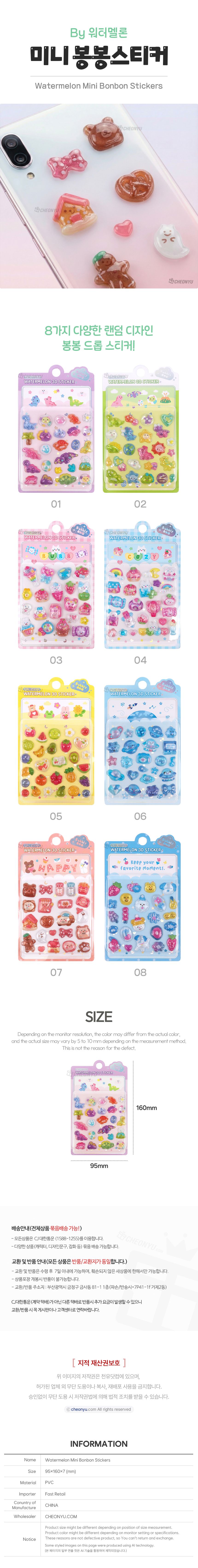 | 품명 및 모델명 | 워터멜론 미니 봉봉스티커_파스텔 (랜덤) | ||
