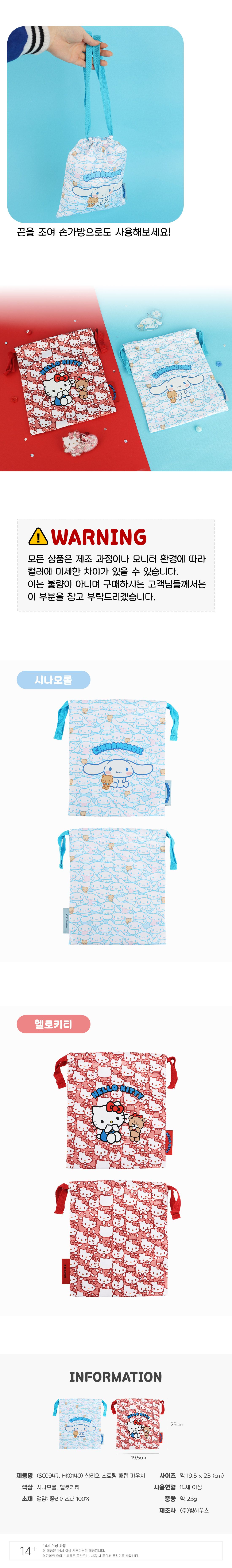 | 품명 및 모델명 | 시나모롤 스트링 패턴 파우치 | ||