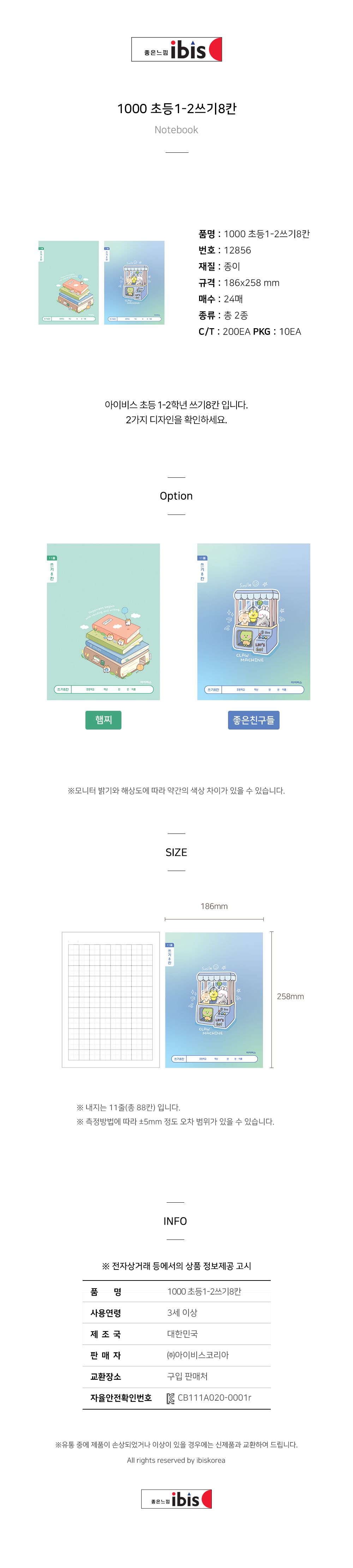 | 품명 및 모델명 | 초등1-2 쓰기8칸 (10개 1세트) | ||