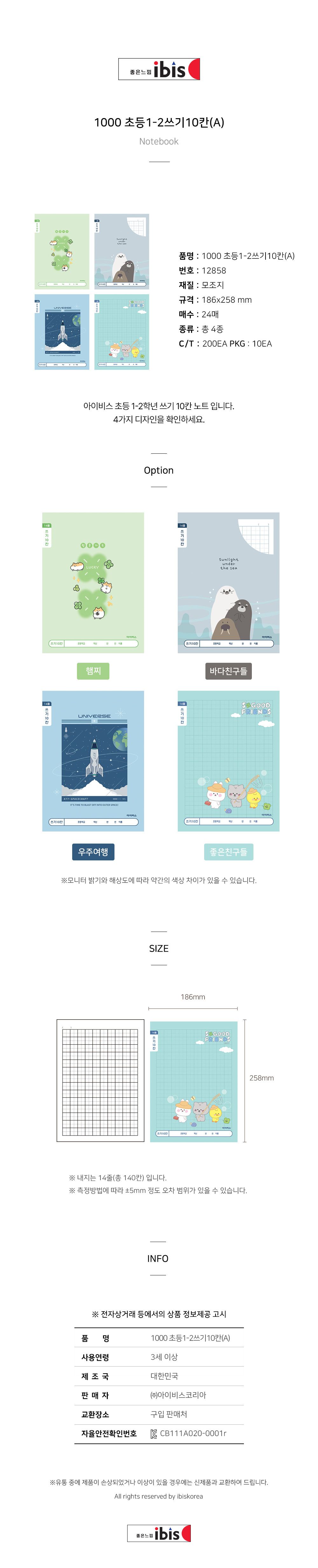 | 품명 및 모델명 | 초등1-2 쓰기10칸 A (10개 1세트) (랜덤발송) | ||
