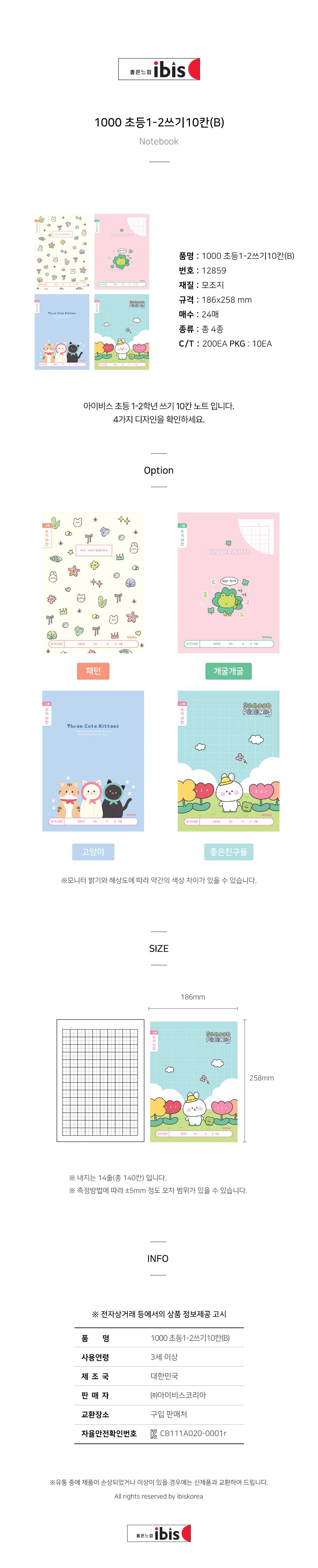 | 품명 및 모델명 | 초등1-2 쓰기10칸 B (10개 1세트) (랜덤발송) | ||