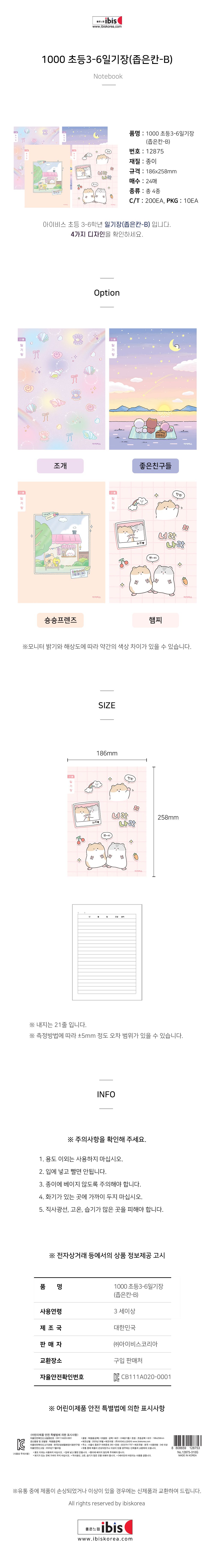| 품명 및 모델명 | 초등3-6 일기장 좁은칸 B (10개 1세트) | ||