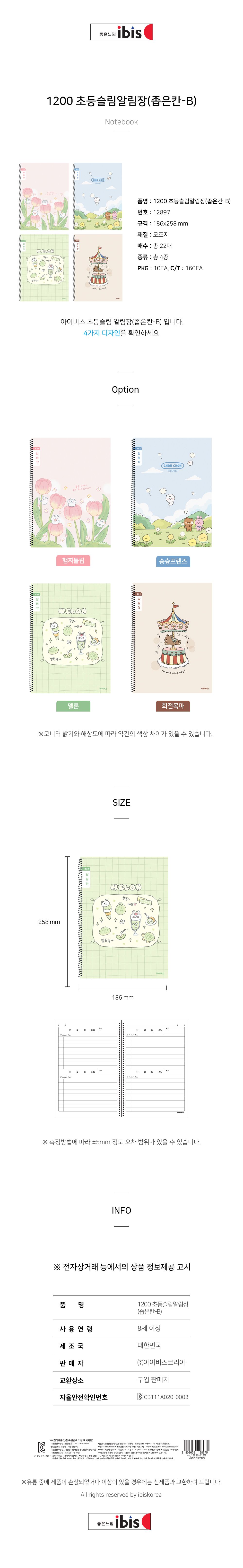 | 품명 및 모델명 | 1200 초등슬림알림장 좁은칸 B (10개 1세트) (랜덤발송) | ||