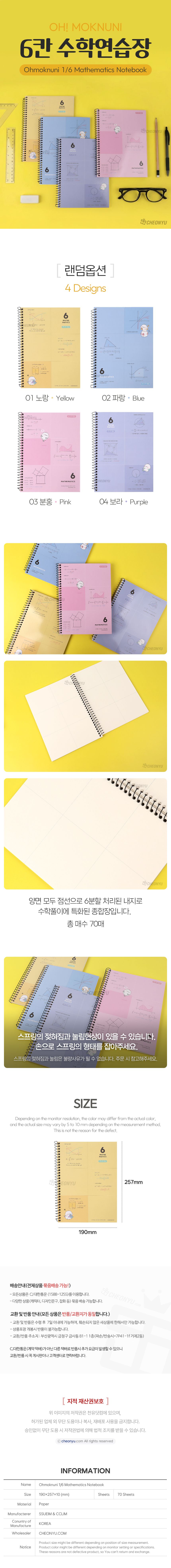 | 품명 및 모델명 | 오목눈이 6칸 수학연습장 (랜덤) | ||