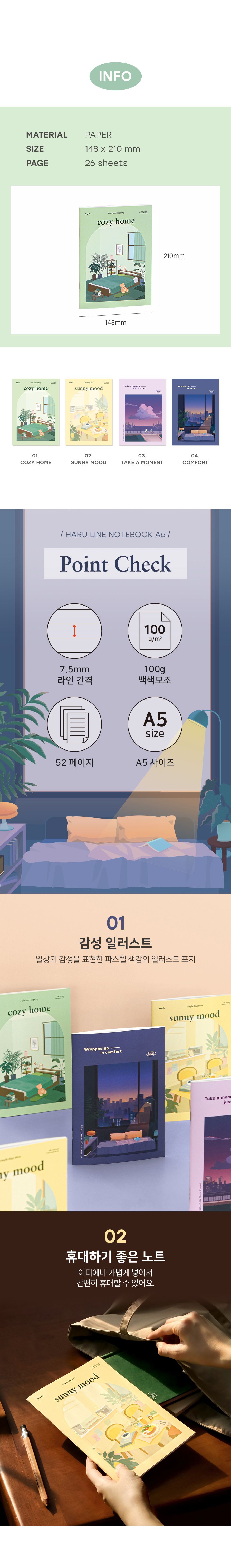 | 품명 및 모델명 | 하루 유선노트 A5 라인 줄 공책 | ||
