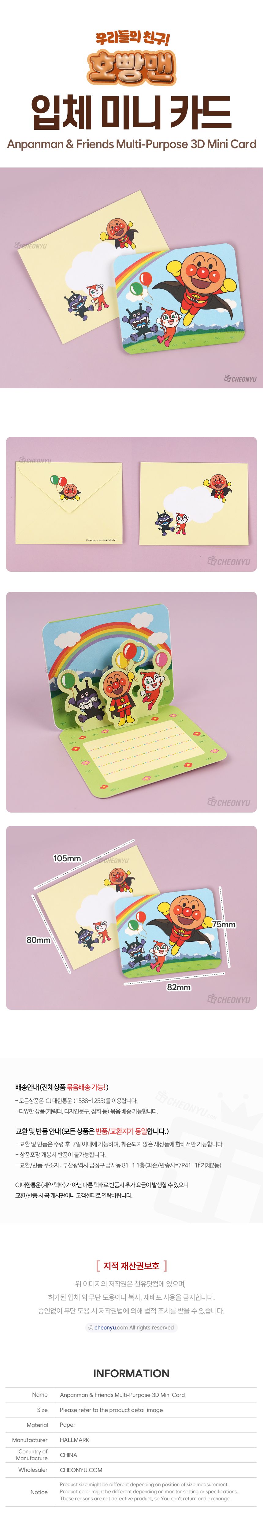| 품명 및 모델명 | 호빵맨과 친구들 입체 미니카드 | ||